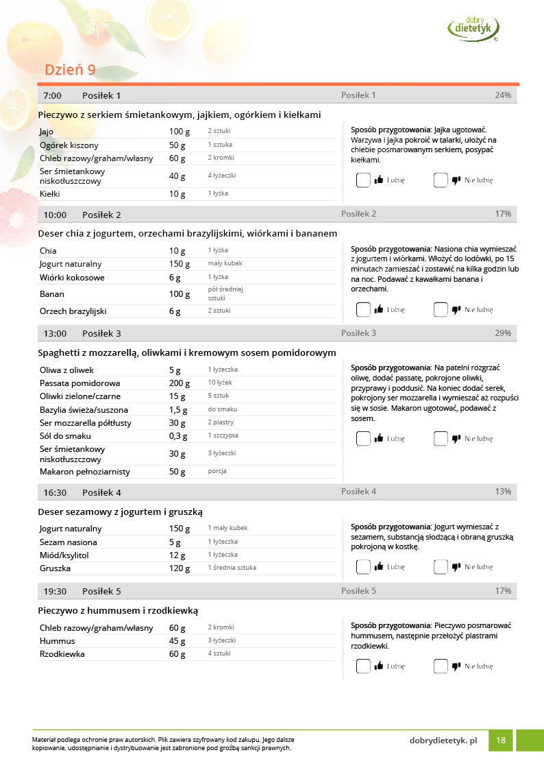 • Liczba posiłków w ciągu dnia: 5